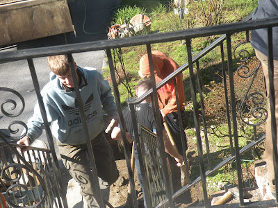 If you refer to my unfortunate event post here you’ll read how I was shocked early in the morning by our Stone Man Charles showing up early Monday morning with a full team and 2 trucks while I was still in my nightgown and hair a hot mess.
