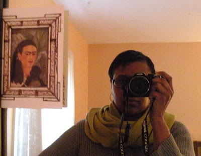 So… I just couldn’t leave well enough alone. Thanks so much for all your comment on my post with the pic of me in my new glasses here. After that post and halfway through your kind comments on how nice I looked, I promptly got my butt in gear and made my way to yet another eyeglass store in the handy chain that has the fab 30 day no questions asked guarantee. Sigh.When I went into the new store I told the employees my story about just feeling blah about my new glasses and asked their opinion. They agreed the glasses were a tad too big for my face and that I should be happy with them so I spent a good hour there mulling over frames until I found these that are very close to my pair that broke and I loved. And one hour after that I had my 3rd pair of new glasses.Let’s hope 3rd times the charm. I sure think so! Lesson here? It really doesn’t matter what anyone else thinks about how you look. It’s how you feel about how you look that counts.Or maybe what Frieda Kahlo thinks. She looks happy to me.Best,KwanaChill Baby