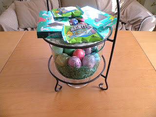 While we were at church I had the foresight to move the plate of chocolates off the kitchen table but left the hard boiled eggs surely they were safe. Not.We get home a few hours later to terrible eggy smell. Jack had climbed on the table took a couple of eggs and, I kid you not, peeled them, and ate the eggs. He left the peelings on the couch. What is with that dog? I swear to you, one of the eggs he ate was the one I made for him that said “Good Dog” and had his little drawing. Jokes on me!