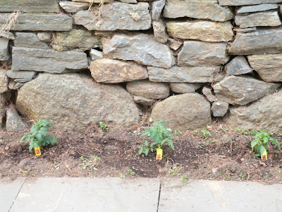 I did a little planting over the DIY weekend along the little patch of dirt in front of my stone wall out back.I planted 3 tomato plants, some peppers then went crazy with seed packets.Now I’ve never planted seeds before so who knows what will happen. I’ve got squash, 2 kinds, cucumber, more peppers and more lettuce, 2 kinds. Yikes. That darn groundhog will have a field day!Now I just have to tackle above the wall. Hmm…What are you planting this season? Anything?Best,