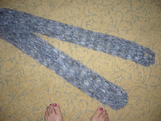Well, I finished it and gave it to Ms. Marley as a present for her Sorority 101 book launch. Here it is along with my strange toes. LOL. I like how it came out. Plus I gave it to her just in time for 70 degree weather. Perfect!Now it’s time for me to start a new project. I’m going to go for something ambitious that will take me into fall. More to come later.