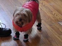 What’s Jack up to? Well it looks like jack is starting to enjoy the snow. Maybe it’s due to his Old Navy jacket and Cool booties from Ina in Alaska that keep his paws warm. Quite sporty.Thank you all so much for the love and support yesterday. I’m sore (Freakin’ Ouch!!) from my surgery but trying to be positive. The biopsies went well but I won’t have any results until after Christmas so I’m going to focus on healing and trying to have a low stress and full of love holiday with the DH, DS, DD and the rest of the fam. That is the most important thing. That and being thankful to God for each day.