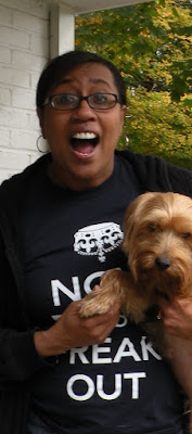 So I have to come to terms with the fact that is really is December. The idea is cr-a-zy to me. I’m so foggy with the whole Christmas thing this year. Usually by now my tree would be up and the family would have had our yearly Sears portrait torture session. As it stands the tree is not up and I have not even made a Sears appointment and don’t know if I will. Sigh.I’m in a bit of a fog. Perfect time for me to show you this picture in my Now Panic And Freak Out tee shirt because I think it fits the situation. Well, it fits me on just about any given day really. I found it over here at Threadless and fell for it as soon as I saw it.