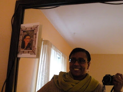 So… I just couldn’t leave well enough alone. Thanks so much for all your comment on my post with the pic of me in my new glasses here. After that post and halfway through your kind comments on how nice I looked, I promptly got my butt in gear and made my way to yet another eyeglass store in the handy chain that has the fab 30 day no questions asked guarantee. Sigh.When I went into the new store I told the employees my story about just feeling blah about my new glasses and asked their opinion. They agreed the glasses were a tad too big for my face and that I should be happy with them so I spent a good hour there mulling over frames until I found these that are very close to my pair that broke and I loved. And one hour after that I had my 3rd pair of new glasses.Let’s hope 3rd times the charm. I sure think so! Lesson here? It really doesn’t matter what anyone else thinks about how you look. It’s how you feel about how you look that counts.Or maybe what Frieda Kahlo thinks. She looks happy to me.Best,KwanaAn Interview, A Giveaway and a Scandal